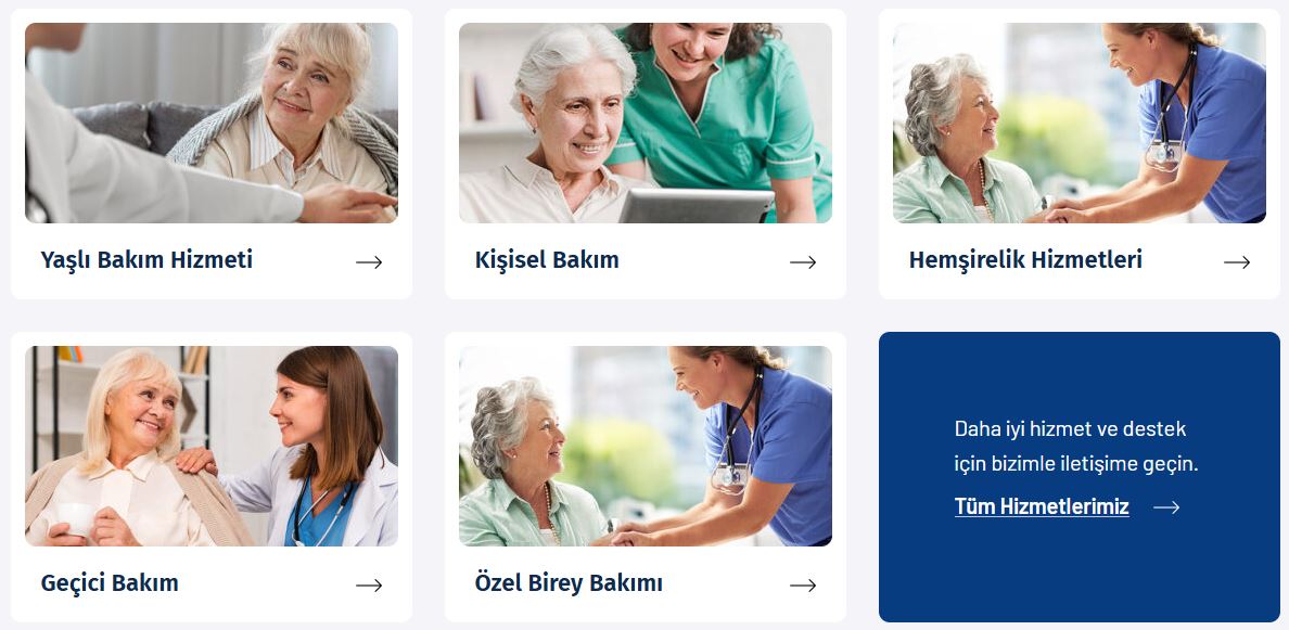Deneyimli bakım ekibimizle 7/24 sağlık takibi, kişisel bakım ve psikolojik destek sağlıyoruz.